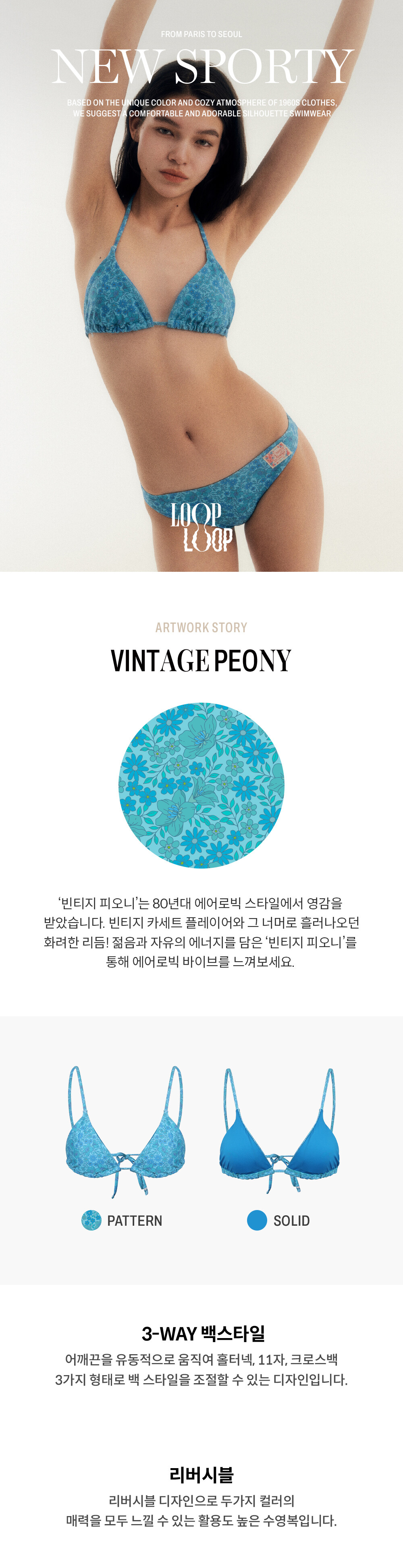 스트링 비키니 탑 [빈티지 피오니_블루]