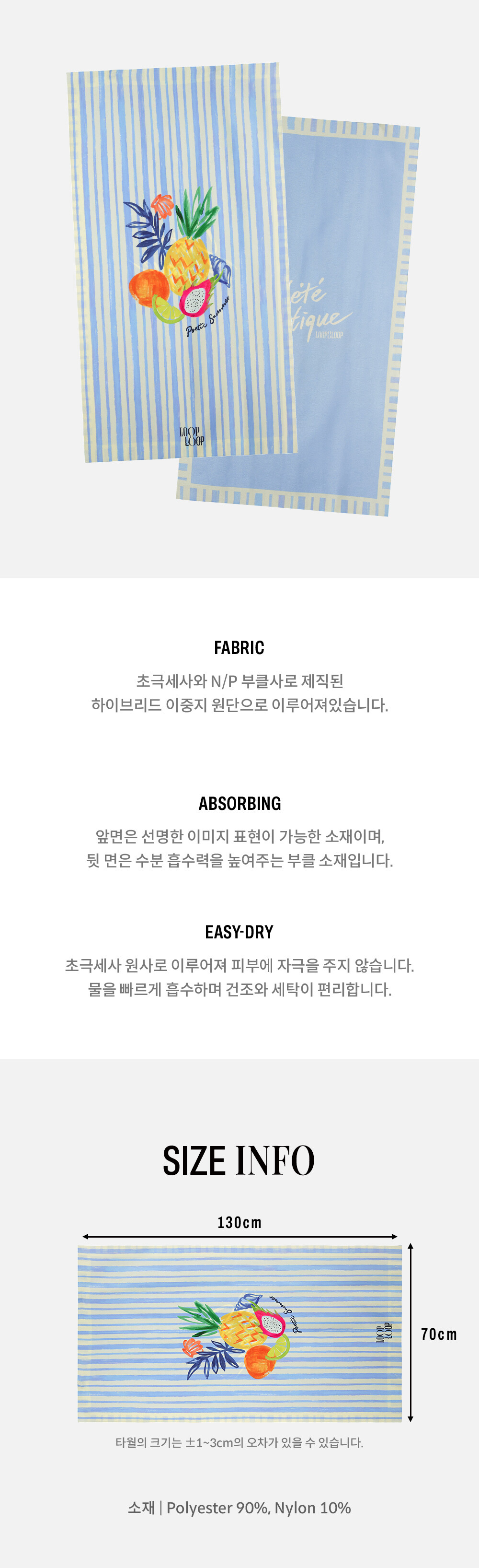 -초극세사와 N/P 부클사로 제직된 하이브리드 이중지 원단으로 제작된 건식 스포츠 타월입니다.
