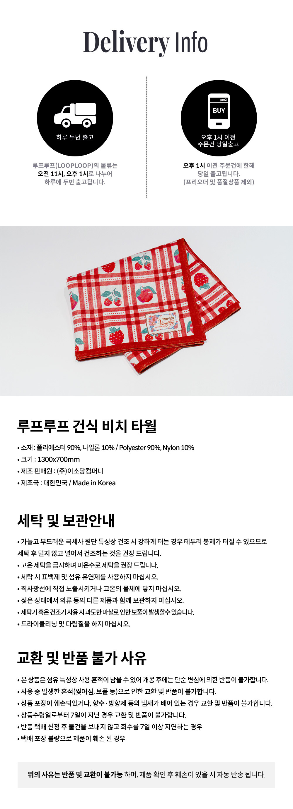 *가늘고 부드러운 극세사 원단 특성상 건조 시 강하게 터는 경우 테두리 봉제가 터질 수 있으므로 세탁 후 털지 않고 널어서 건조하는 것을 권장 드립니다.