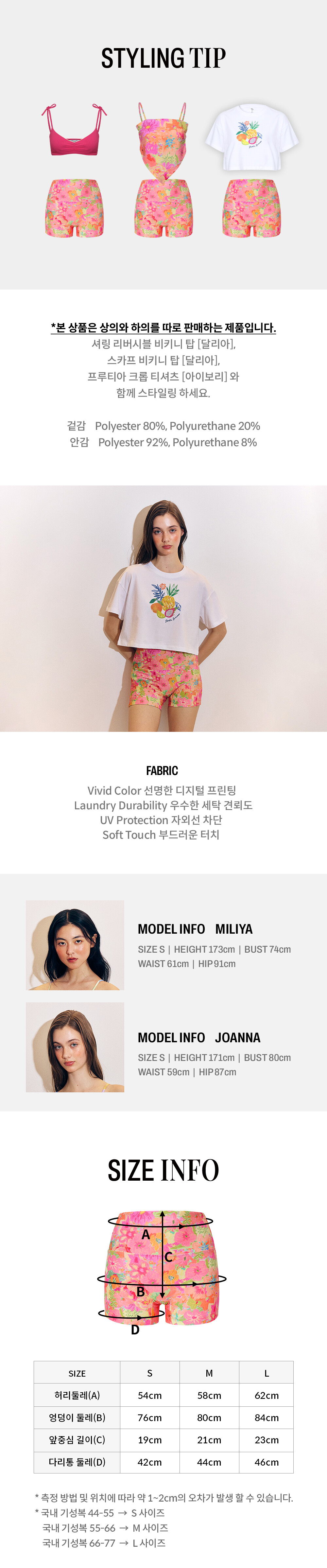 -원피스 수영복과 함께 3부 수영복 스타일로 착용하거나 비키니 바텀 대신 착용 가능.