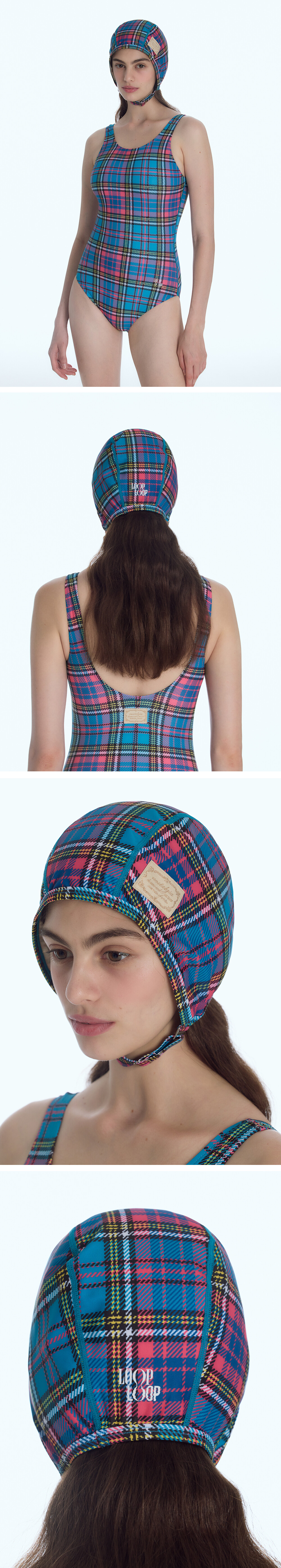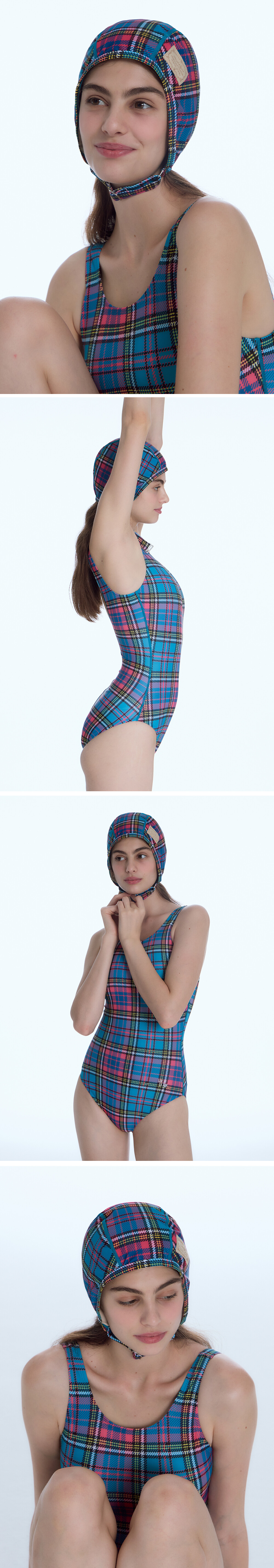 레트로 에비에이터 스윔 캡 [프레피 체크_블루]
