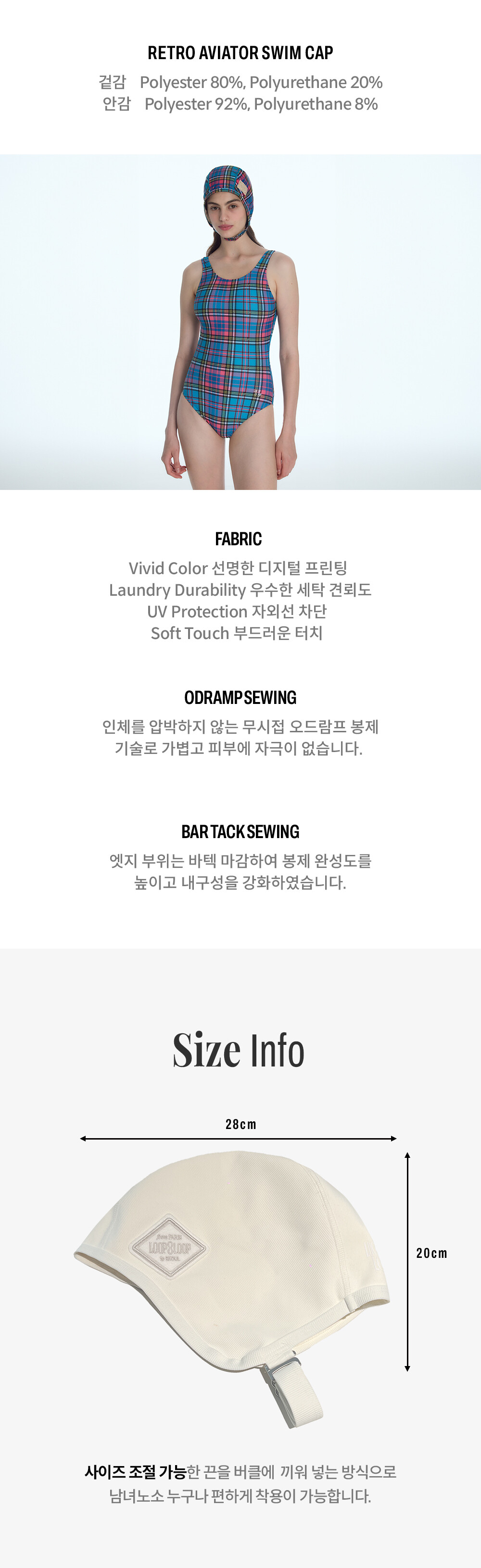 -워터 스포츠 시 머리카락이 날리는 것을 방지하고 자외선으로부터 두피를 보호해 주는 패브릭 스윔캡.