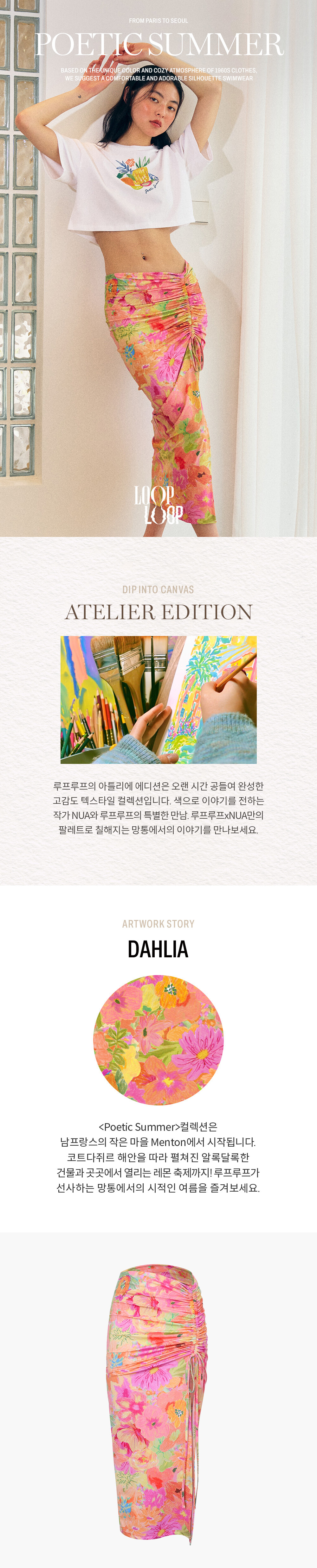 -[달리아] 아트웍으로 제작된 커버업 스커트.
