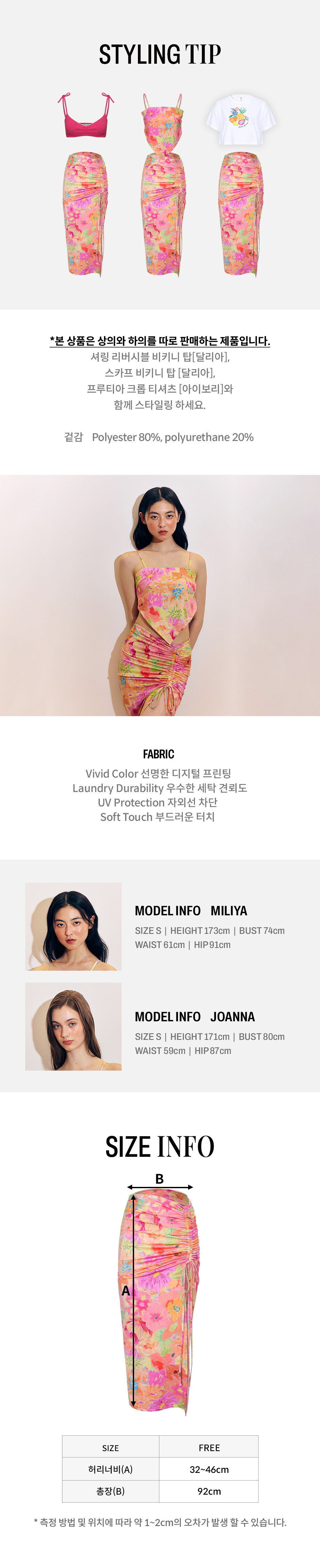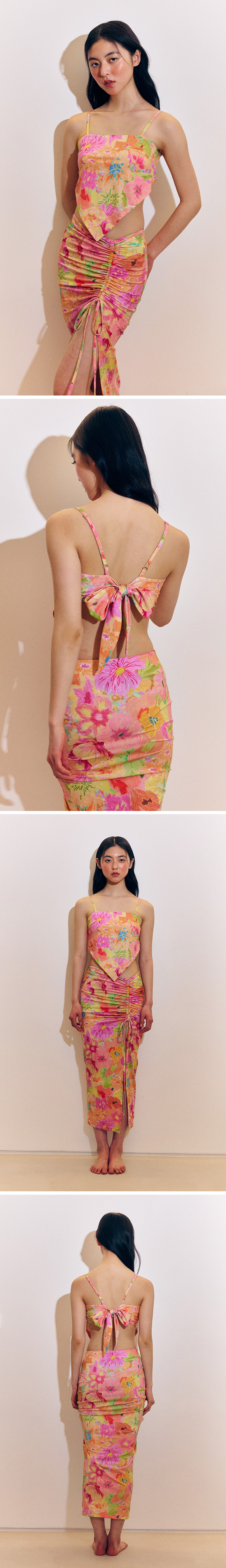 -셔링 부위의 끈으로 트임 높이 조절 가능.