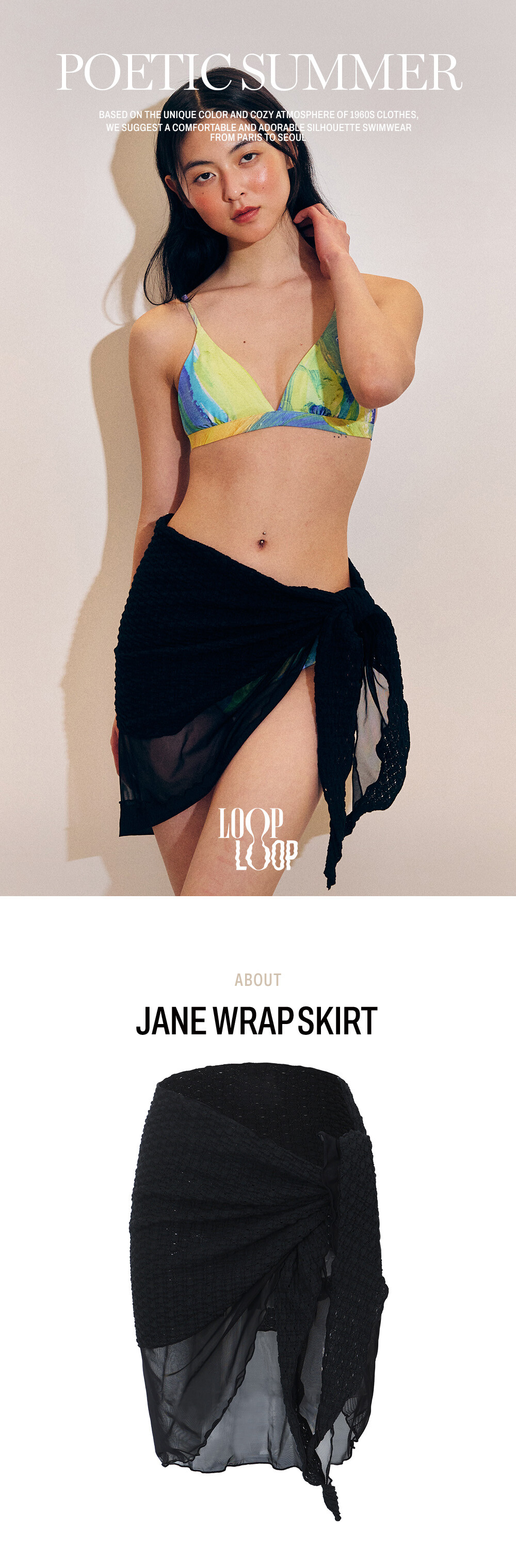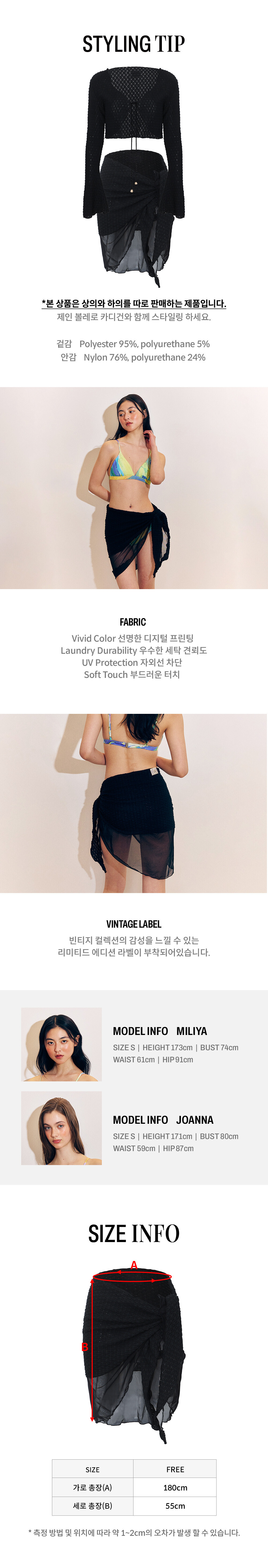 -파레오 스타일로 허리 사이즈에 맞게 매듭을 묶어 착용 가능합니다.