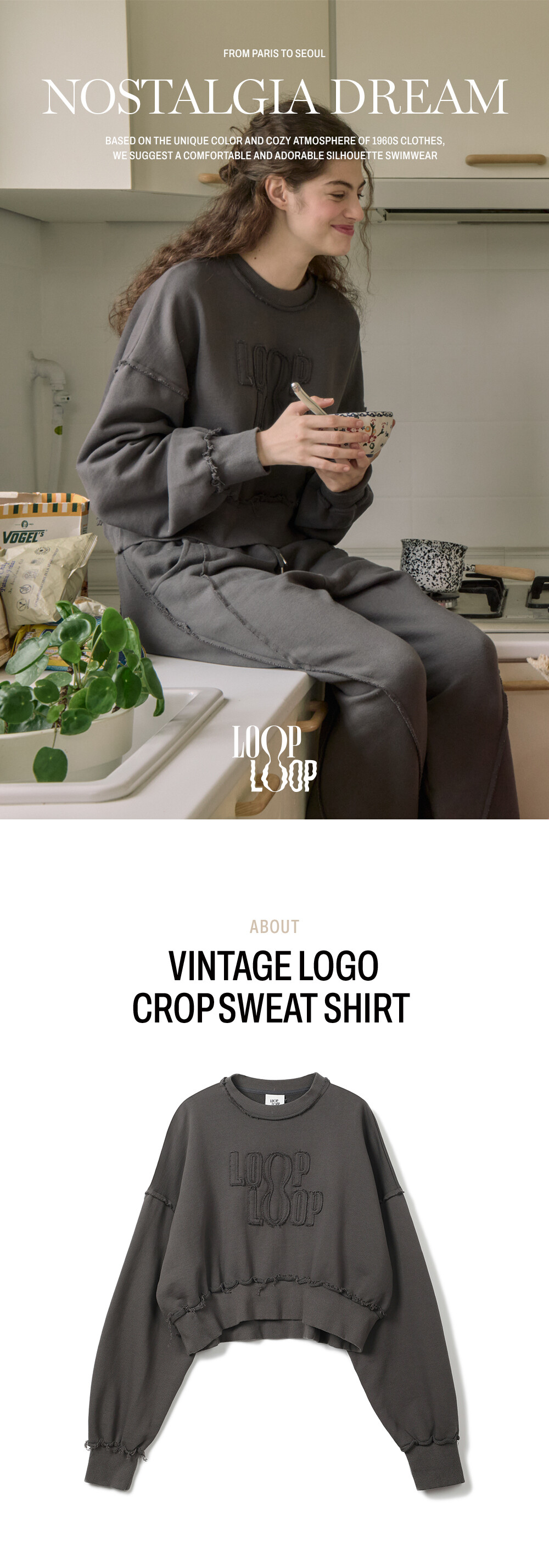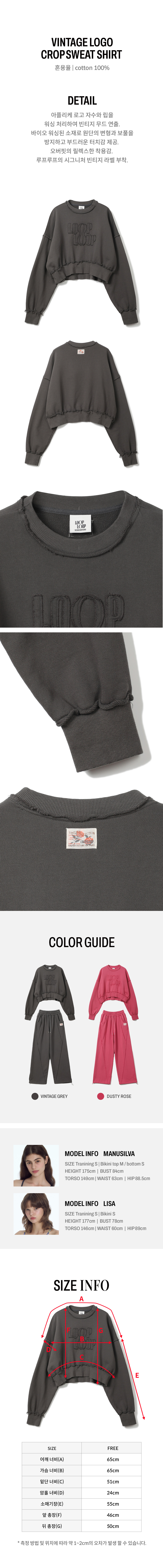 빈티지 오버핏 로고 크롭 스웨트셔츠 맨투맨 (빈티지 그레이)