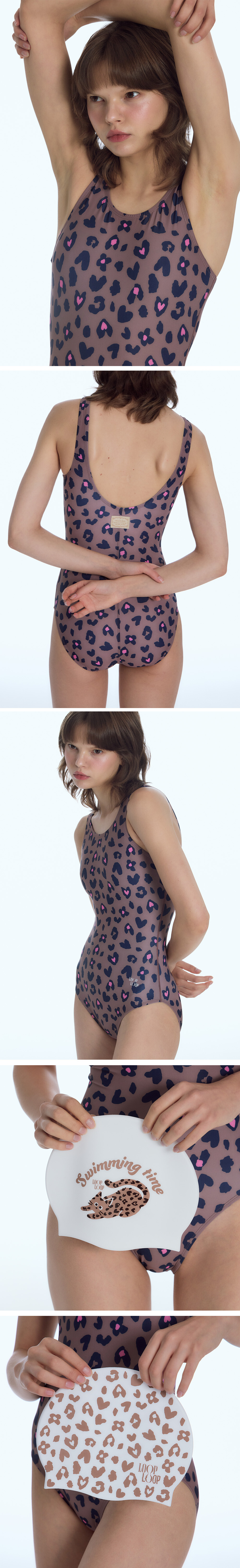 [스위티 레오파드_브라운] U백 원피스 수영복