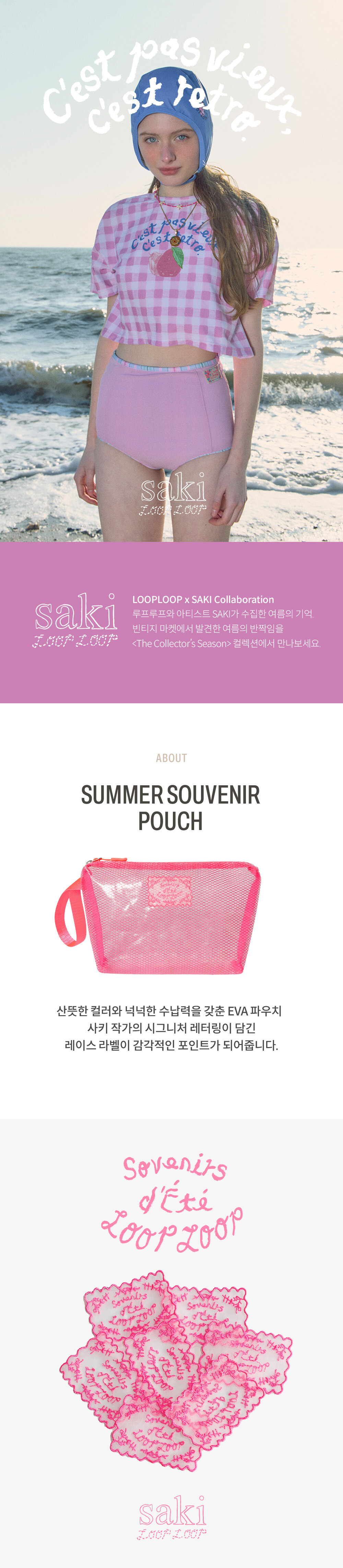 루프루프x사키 [써머 수베니어_핑크] 파우치