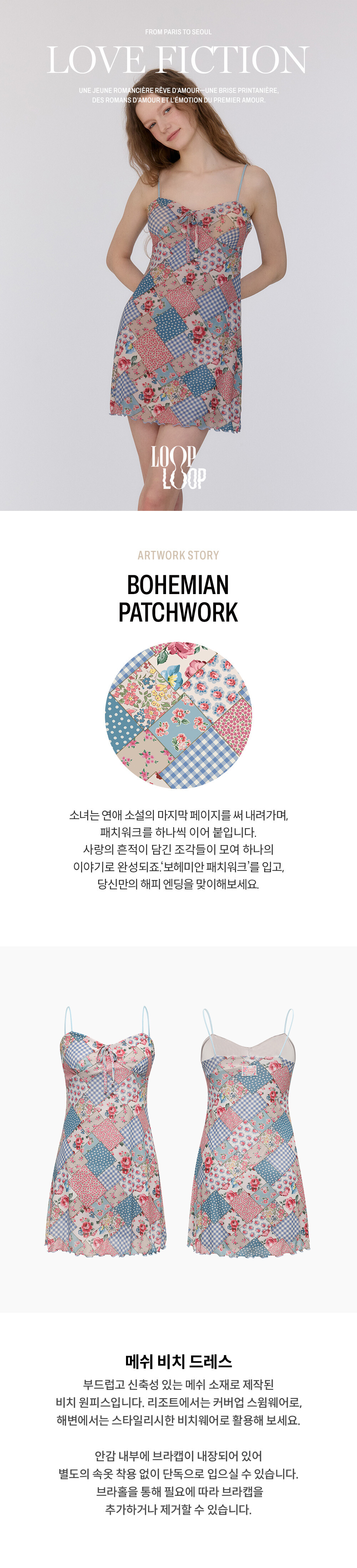 메쉬 비치 드레스 [보헤미안 패치워크_스카이 블루]