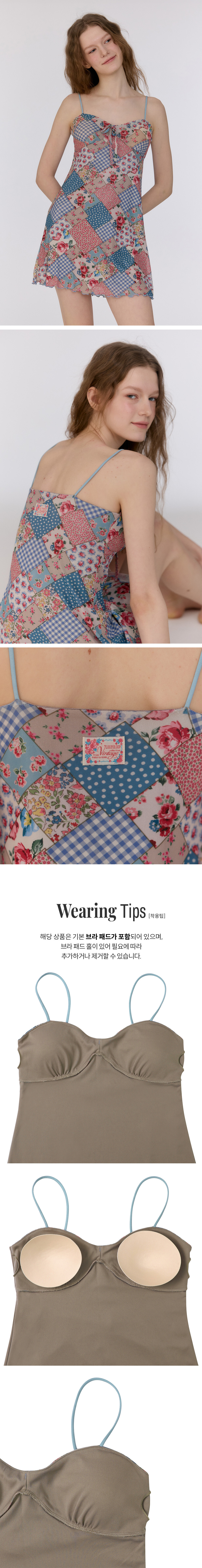 내장된 브라 패드와 브라홀 디테일로 필요에 따라 탈착이 가능하며, 비침을 방지하는 안감을 덧대어 편안하게 착용할 수 있습니다.