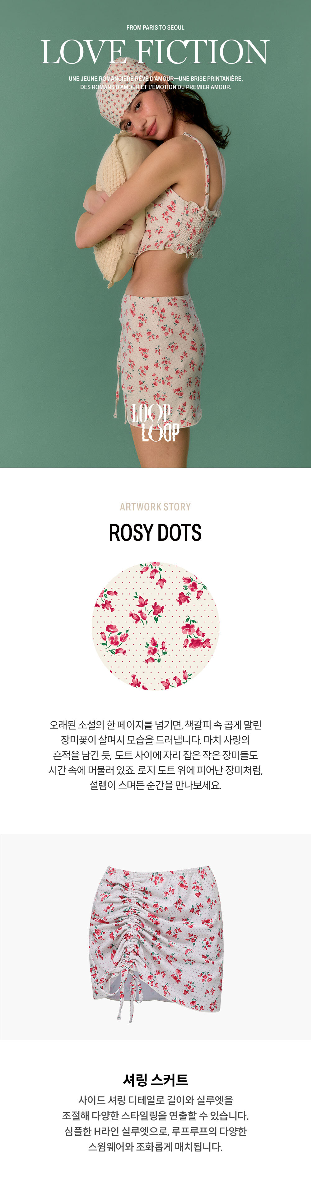 셔링 커버 업 스커트 [로지 도트_레드]