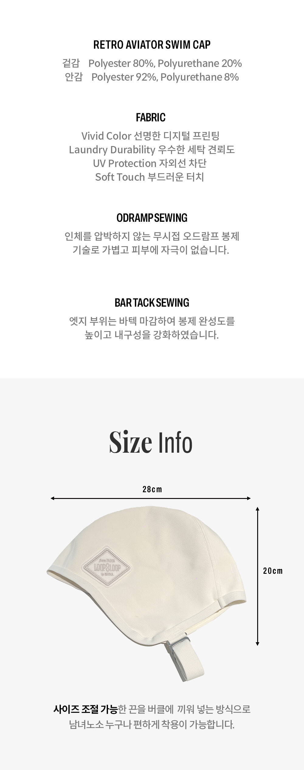 -워터 스포츠 시 머리카락이 날리는 것을 방지하고 자외선으로부터 두피를 보호해 주는 패브릭 스윔캡.