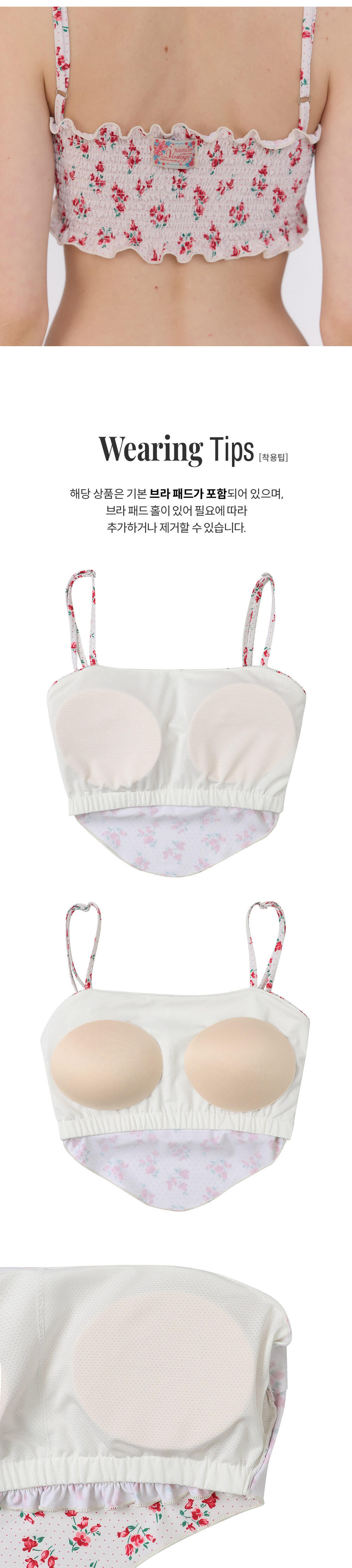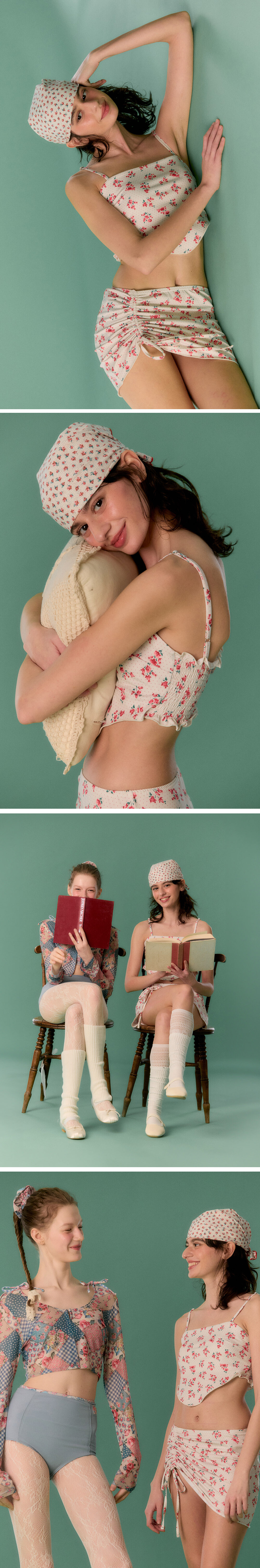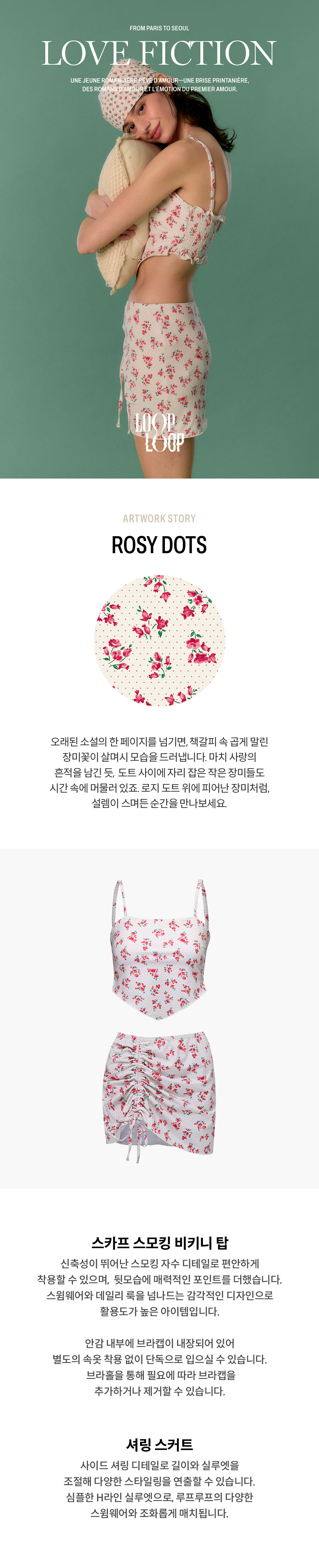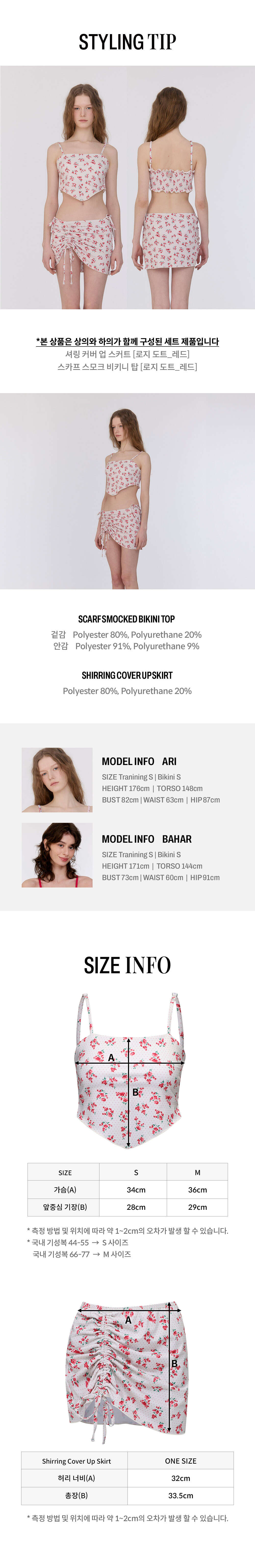 스카프 비키니 탑&셔링 스커트 세트 [로지 도트_레드]